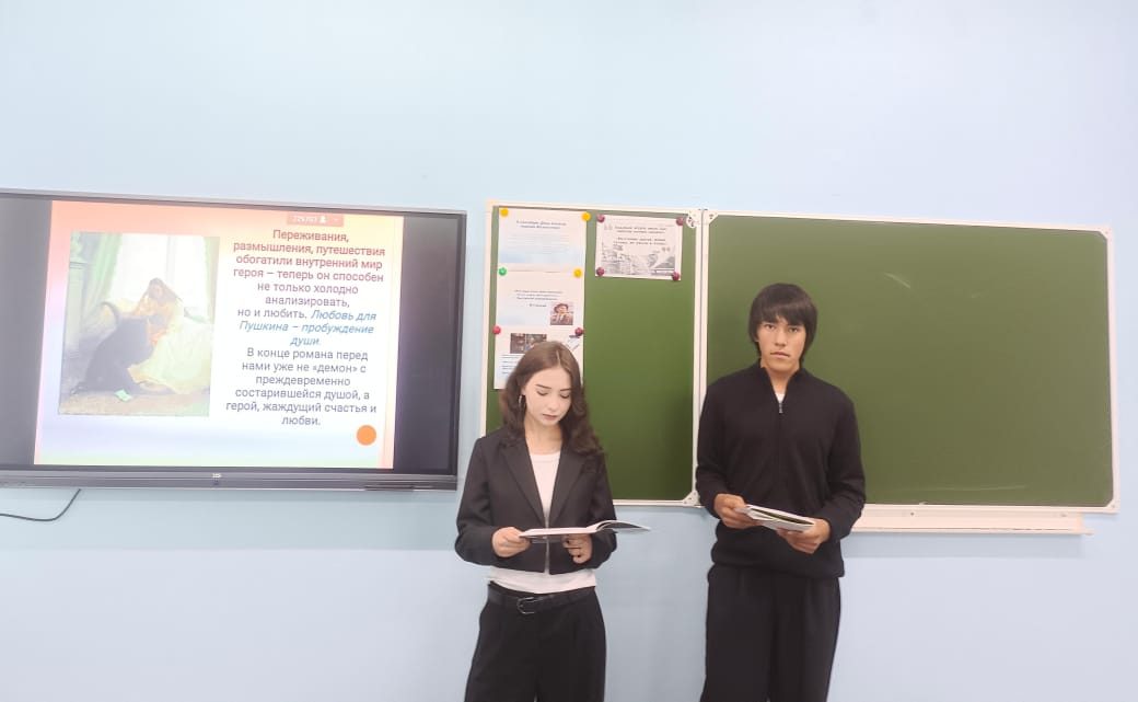 18 қыркүйекте 10-сыныптарда "Пушкиннің" Евгений Онегин "романының беттері бойынша" семинар - сабақ өтті.