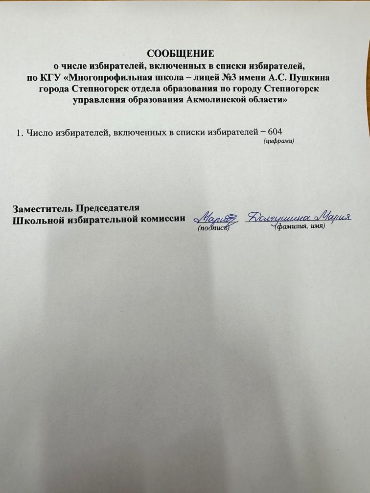 18 октября 2025 года объявляются выборы Президента школьного парламента КГУ «Многопрофильная школа – лицей №3 имени А.С. Пушкина города Степногорск отдела образования по городу Степногорск управления образования Акмолинской области».