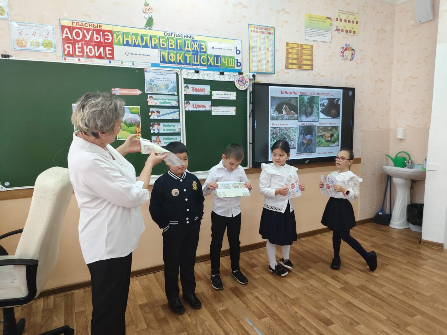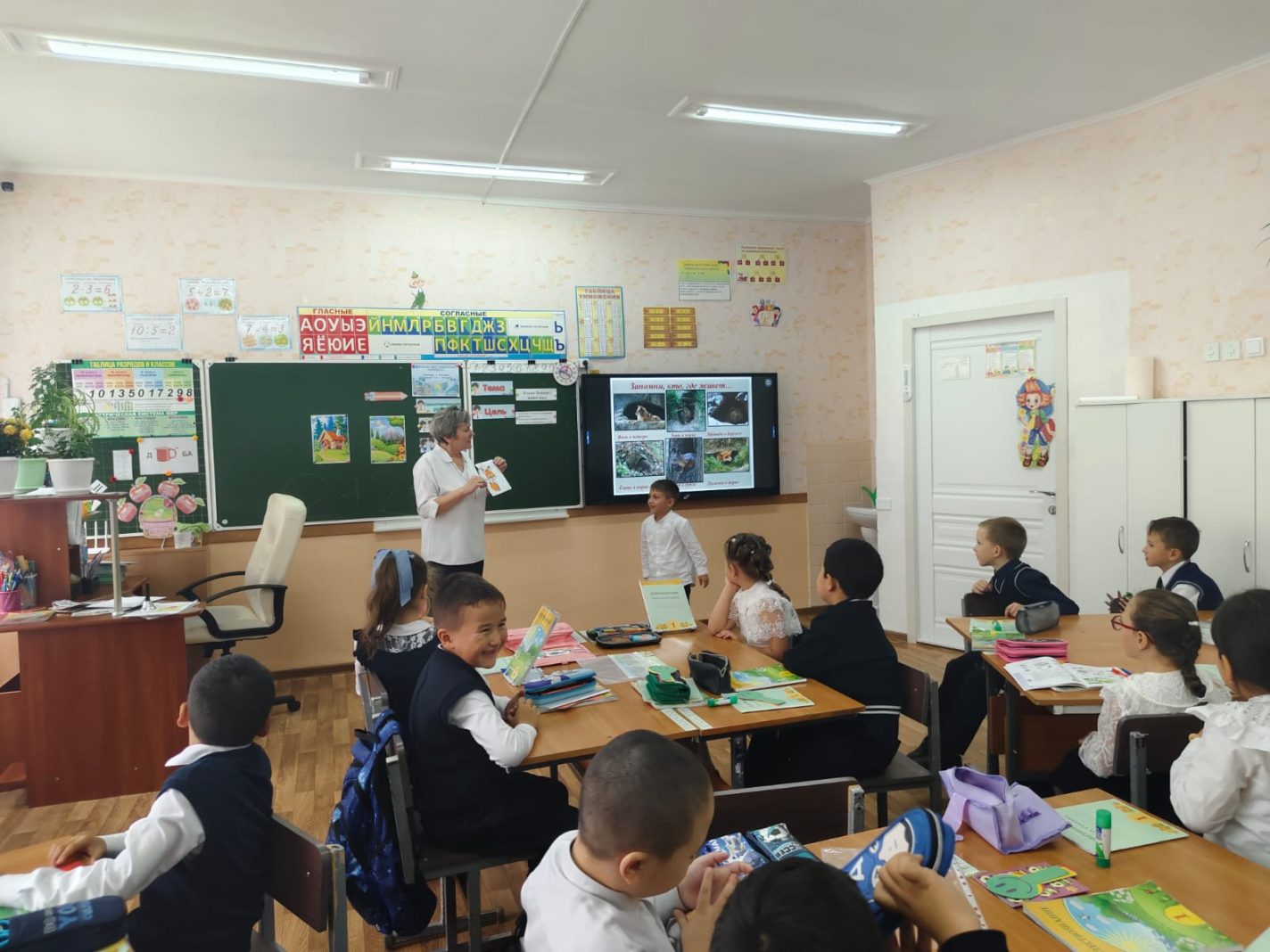 14 қазанда жаратылыстану пәнінен 1 "А" сыныбында "Қандай жануарлар болады"тақырыбында сабақ өтті. Сабақта оқушылар жануарлардың әртүрлі топтарымен танысып, жабайы жануарлардың үй жануарларынан қалай ерекшеленетінін, қайда тұратынын және не жейтінін білді.