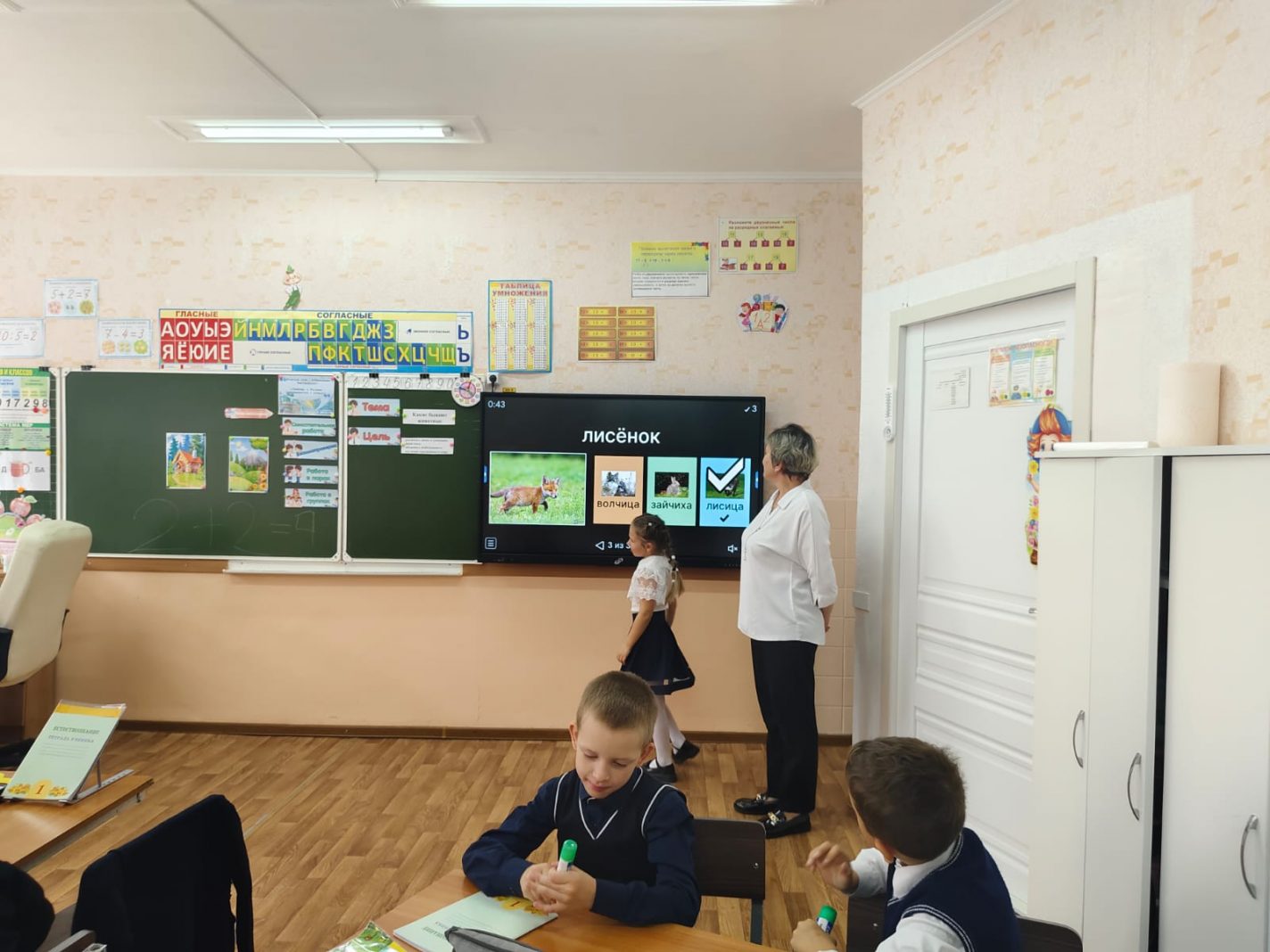 Word woll бағдарламасында ИИ көмегімен интерактивті тақта арқылы оқушылар "Жануардың баласын атаңыз" ойынына қатысты.