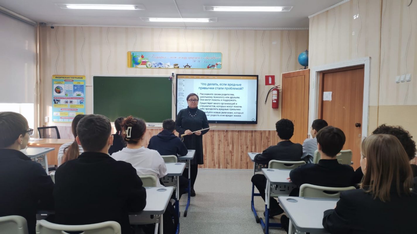 2026 жылғы 30 қаңтарда мектептің әлеуметтік педагогы Л.В.Астапенко 9 "Б" сынып оқушыларымен жасөспірімдерде салауатты өмір салтына саналы ұмтылысты қалыптастыру, темекі шегуге, алкогольге, есірткіге, энергетикалық сусындарды шамадан тыс тұтынуға, ұйқы режимін сақтамауға, интернетке тәуелділік, отырықшы өмір салтына теріс көзқарасты тәрбиелеу,сондай-ақ әлеуметтік қысымға қарсы тұру дағдыларын дамыту мақсатында "Жаман әдеттердің алдын алу" тақырыбында сыныптан тыс іс-шара өткізді.