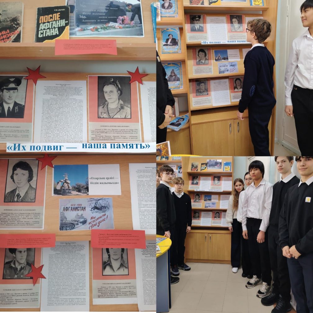 Мектеп кітапханасында Степногорск қаласының Ауған соғысына қатысқан жерлестері туралы көрме таныстырылды.